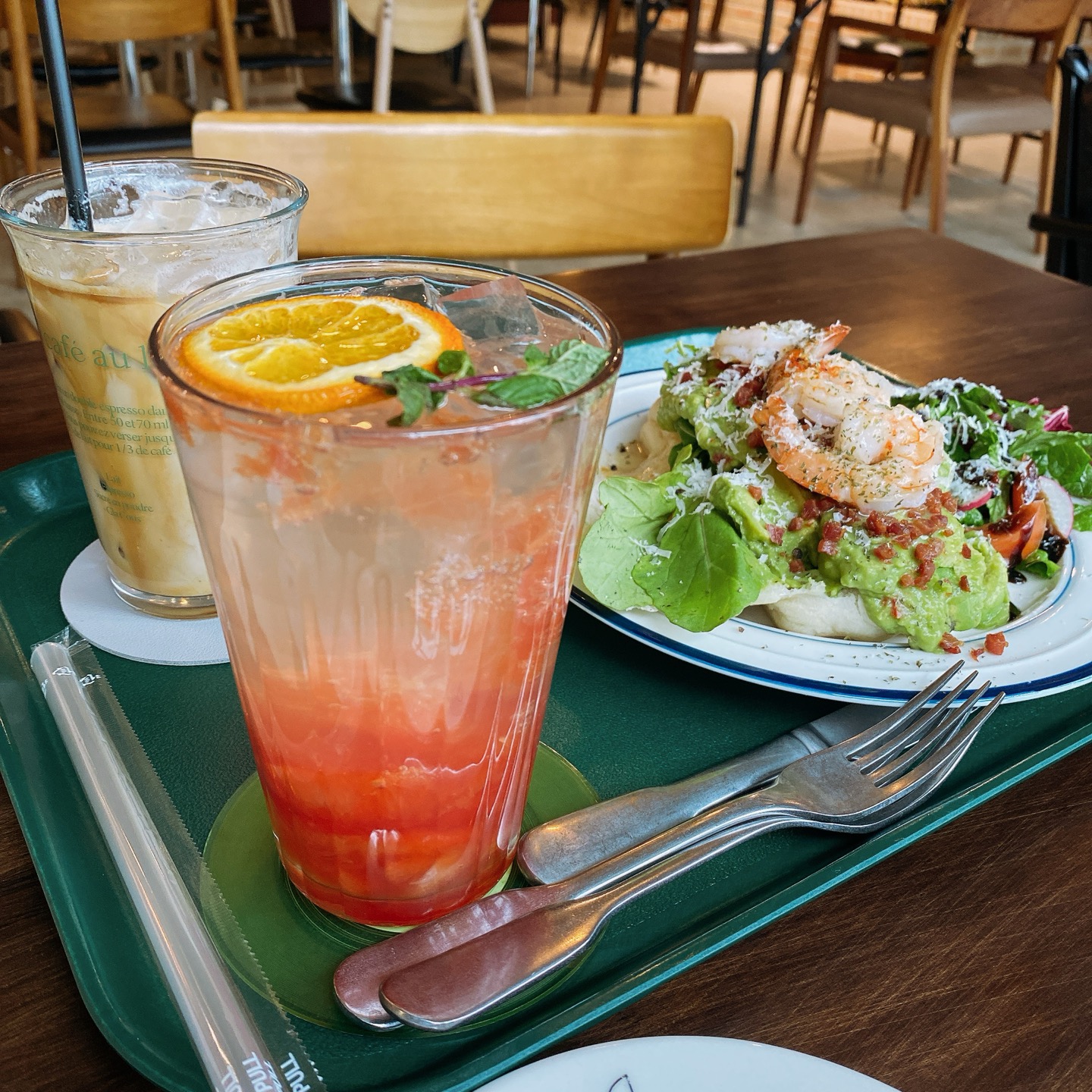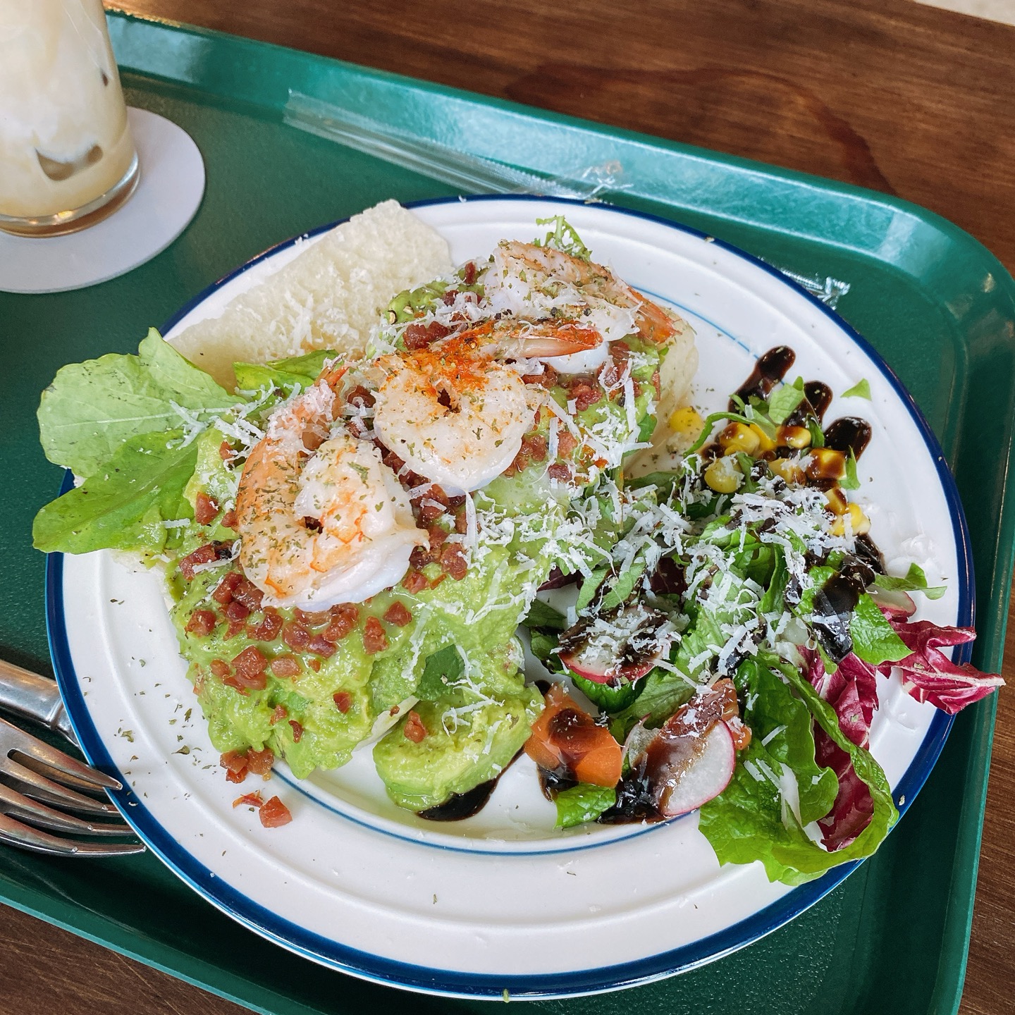 아보카도 쉬림프 오픈 샌드위치랑