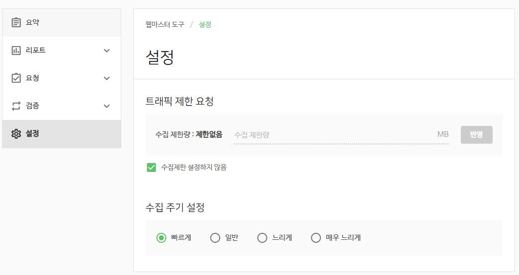 [요약 → 설정] 수집 주기를 '일반 → 빠르게'로 바꿔줍니다.