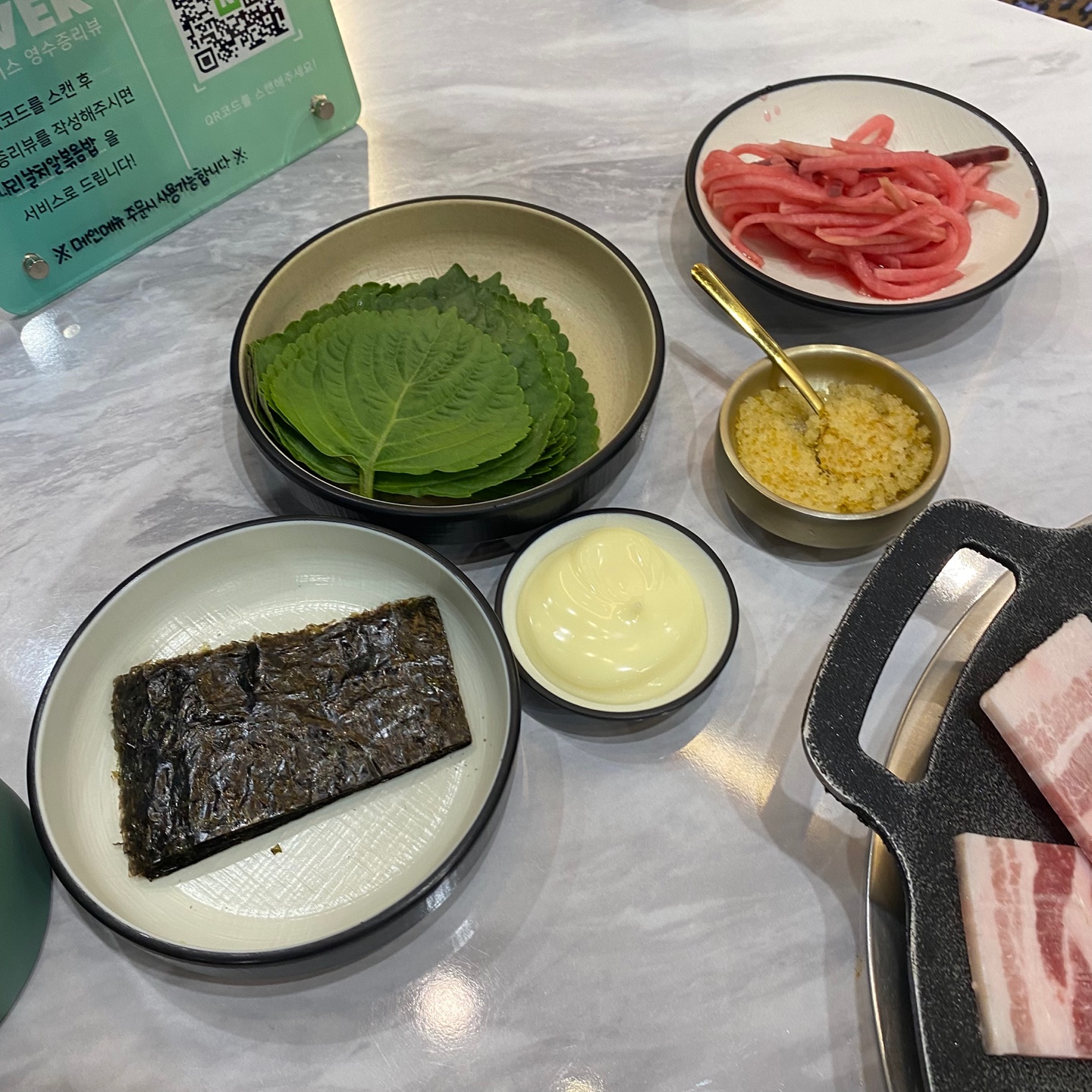 쭈삼을 더더더 맛있게 먹기 위해 필요한 깻잎, 김, 날치알, 무채, 화이트 소스 ♥