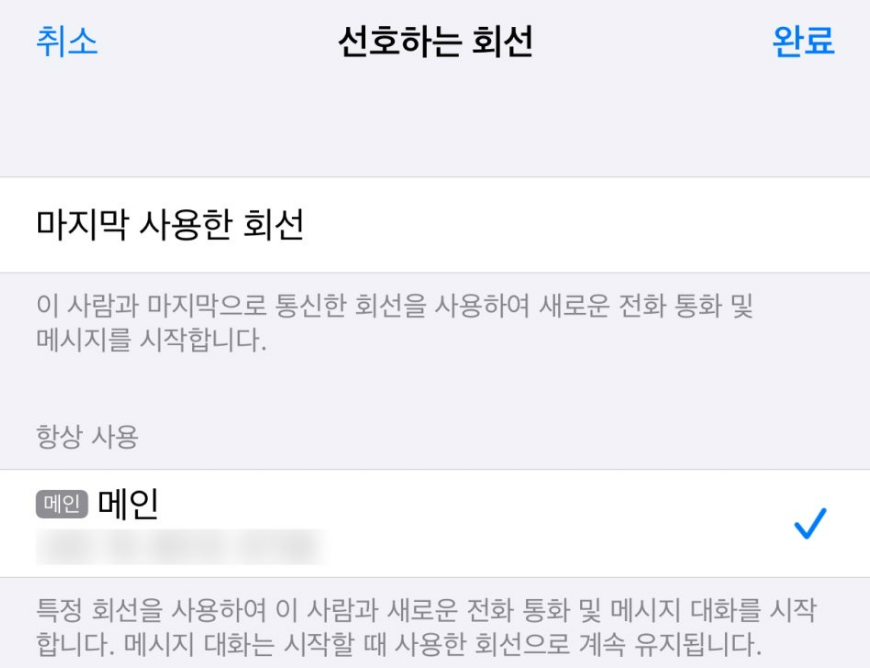 이렇게 마지막 사용한 회선 : '메인'(사용할 수 없음)이라고 나온다면 눌러서 '메인'으로 바꿔줍니다!