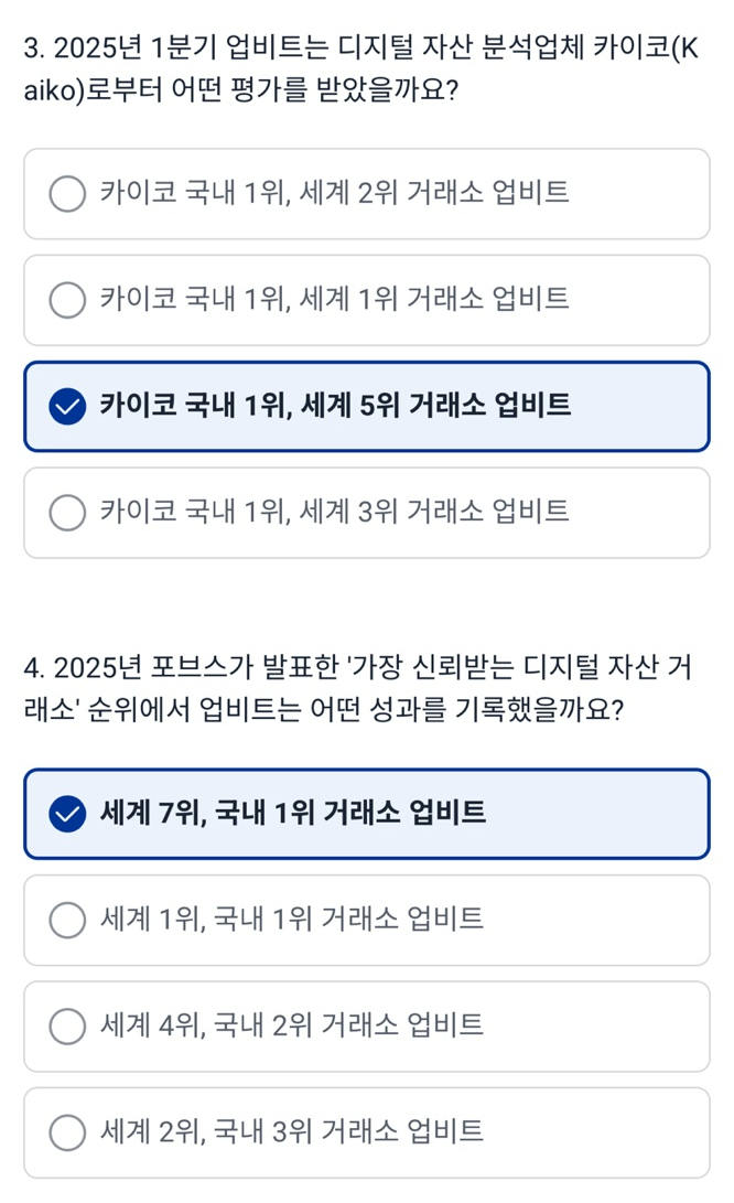 업비트에서 진행 중인 퀴즈 이벤트에 참여하면 추첨을 통해 100명에게 갤럭시 S25 엣지 업비트 익스클루시브를 선물로 준다고 해요! 고객확인완료 후에 업비트에 대해 알아보고 퀴즈를 모두 맞추면 응모할 수 있습니다~!