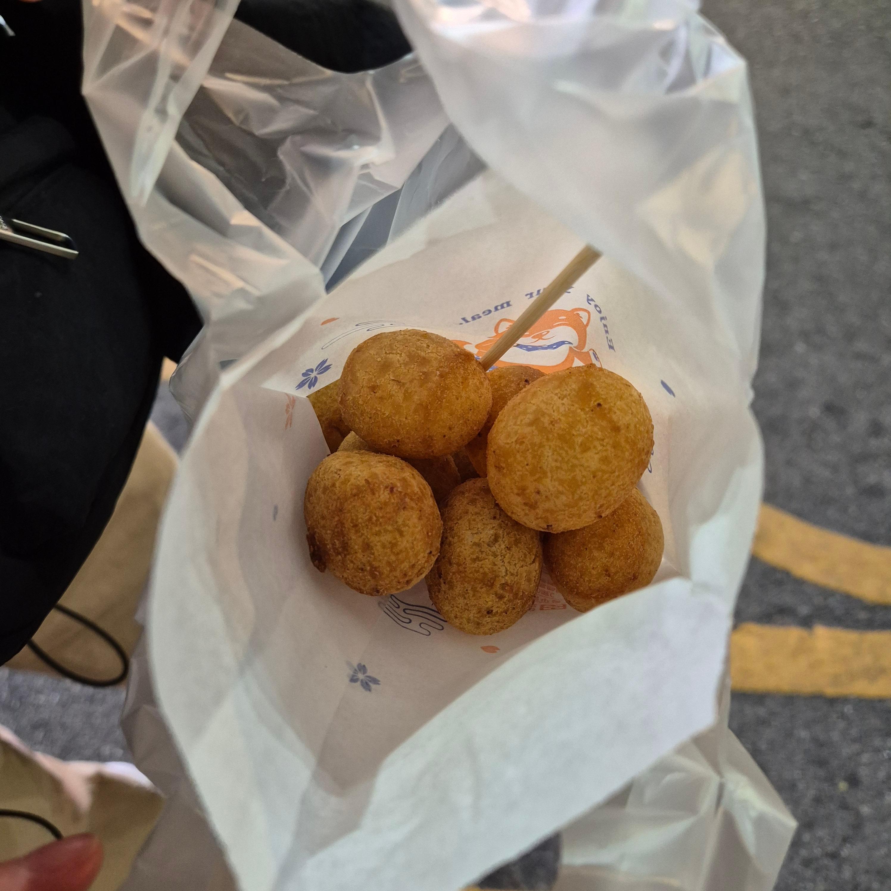 숙소로 돌아가기 전에 산 지파이! 크기가 크고, 살이 두툼하게 가득 차 있어요! ㅋㅋ 튀김이 얇은 편이었고, 뿌려진 소스가 안주로 딱입니다. ㅋㅋㅋ 숙소로 가져와서 먹어서 한참 뒤에 먹은 건데도 맛이 괜찮더라고요. :)